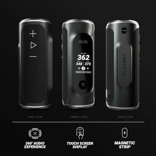 Player+ GPS Speaker with Touch Screen Display, 10+ Hours Battery, 40,000+ Courses, Visual + Audible Distance, Hazard Distance - IPX7 Waterproof (Navy)